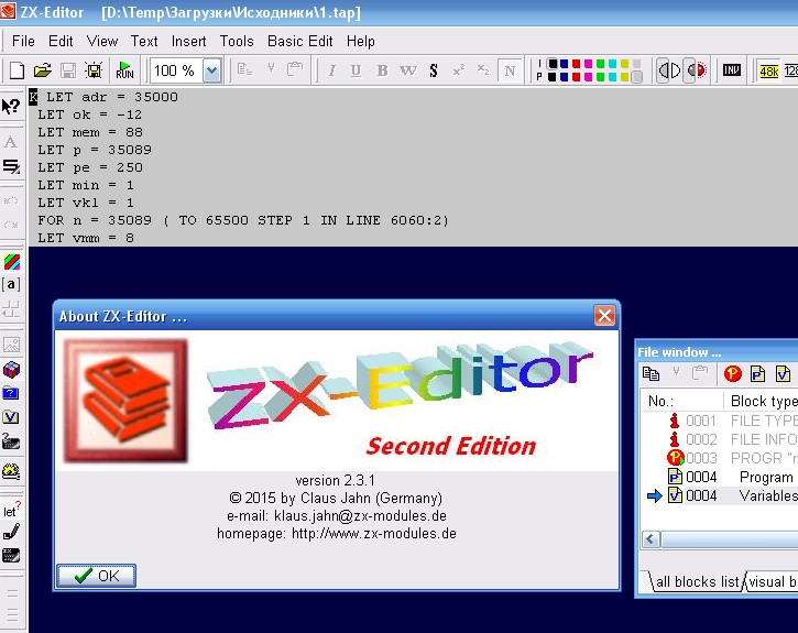потом я всё это сохранил из эмулятора (ZX SPIN) в виде TAP файла.