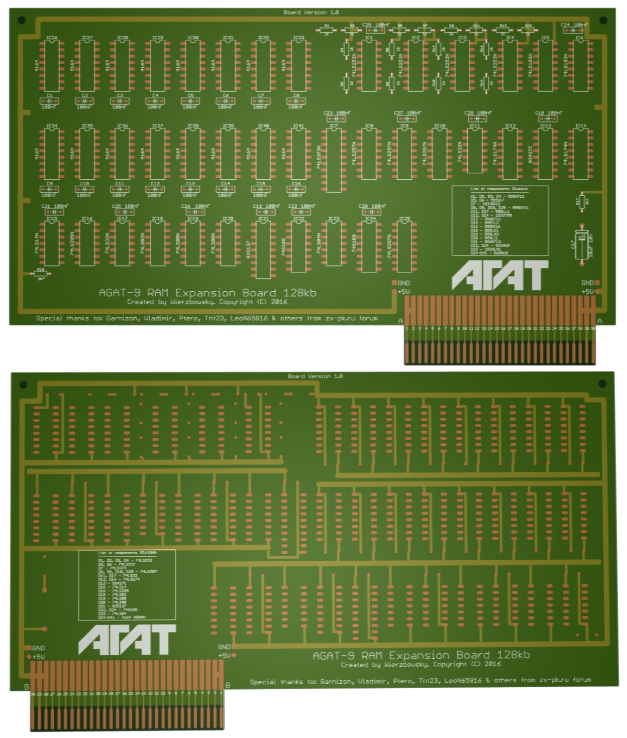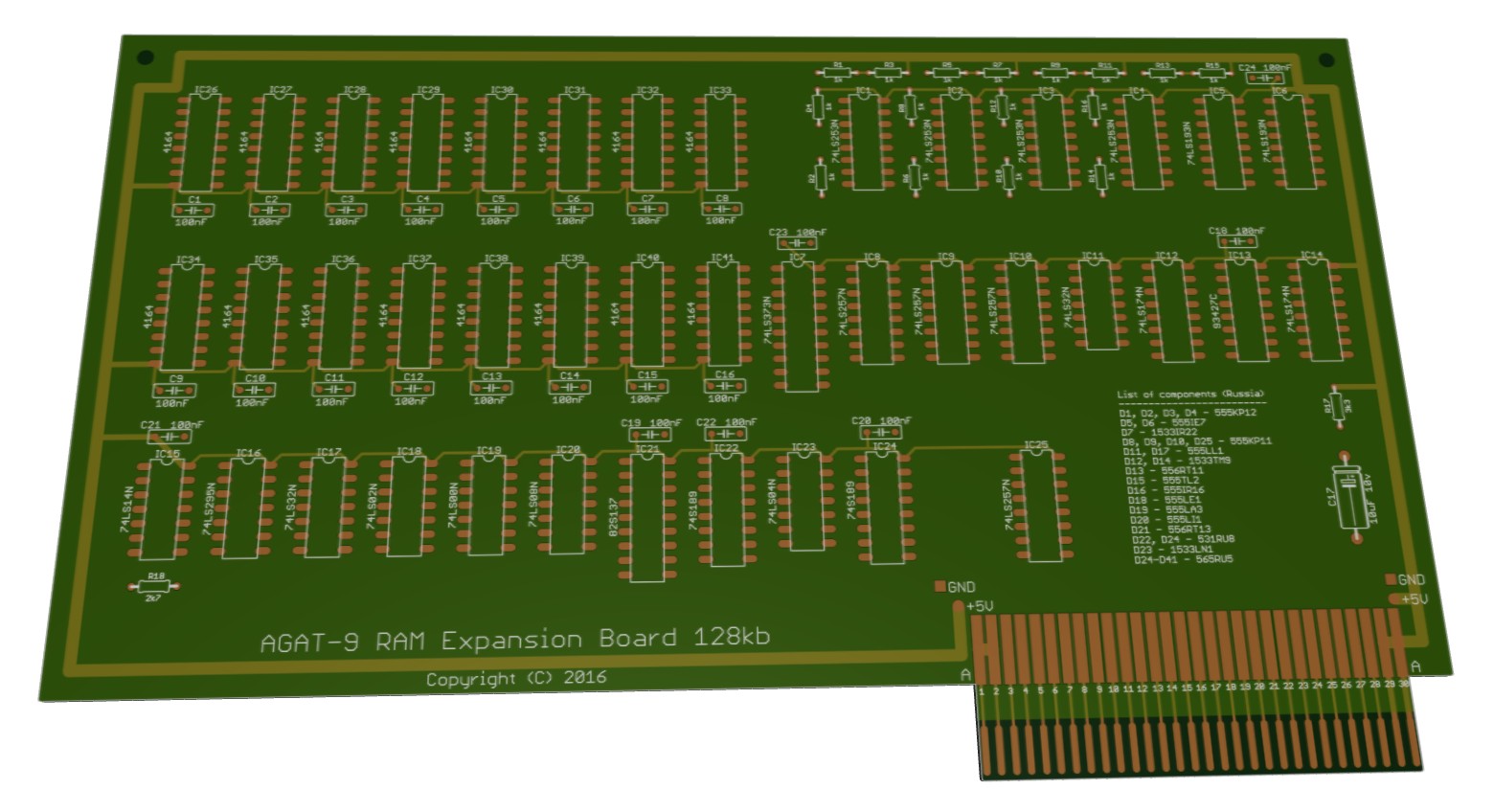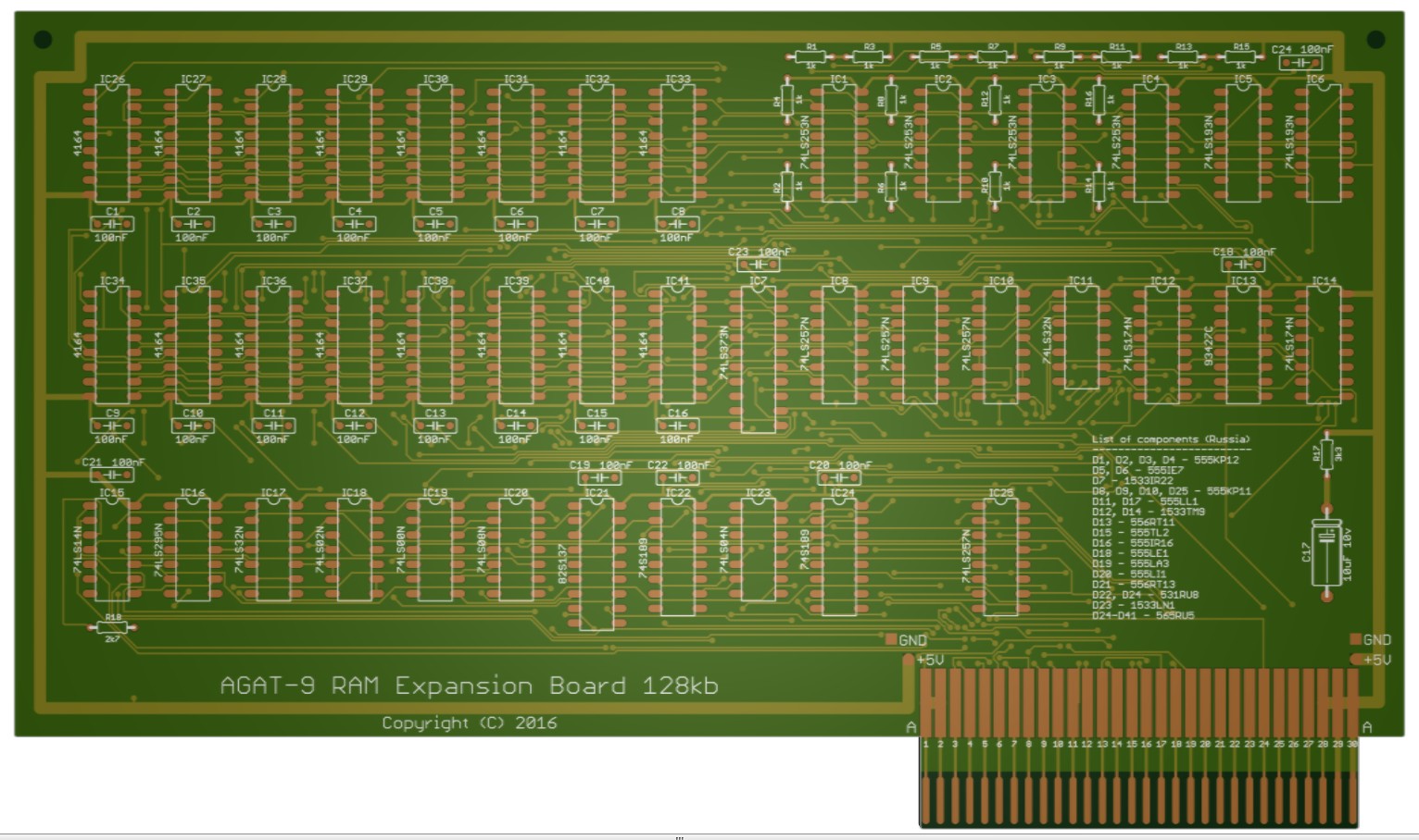 Немного "причесал плату", сделал контактные площадки для тех, кому захочется поставить оригинальный агатовский слотовый разъём отпилив нижний выступ (а также на тот случай, если контакты платы не сойдутся с контактами слота: все-таки вслепую делаю). Вот что получилось: