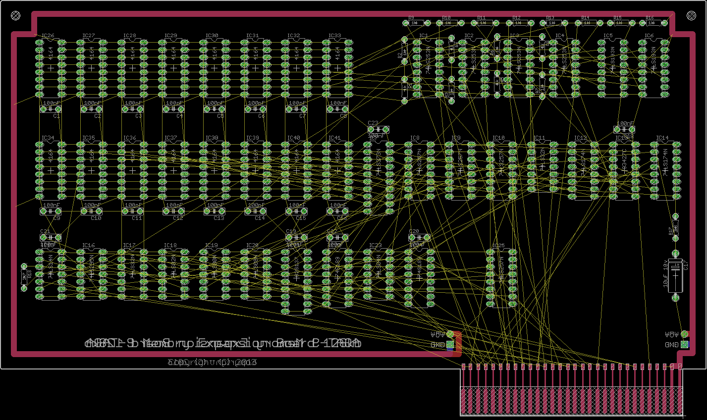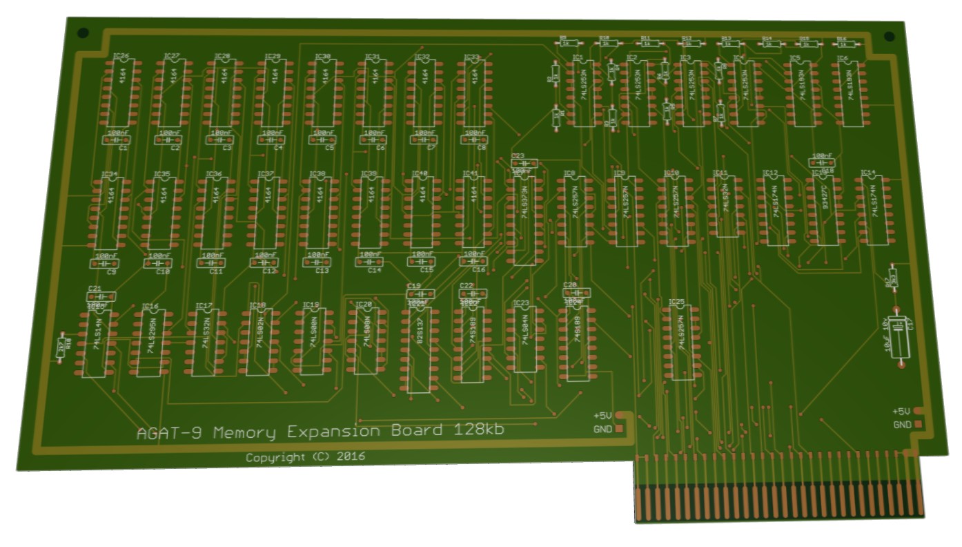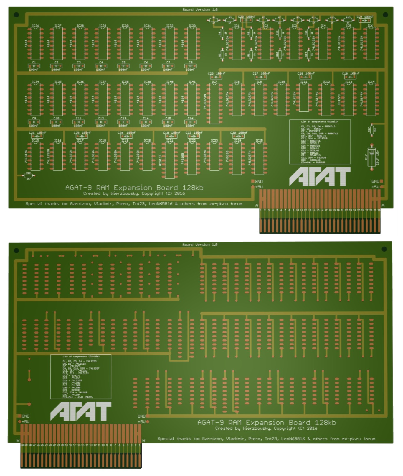 Немного "причесал плату", сделал контактные площадки для тех, кому захочется поставить оригинальный агатовский слотовый разъём отпилив нижний выступ (а также на тот случай, если контакты платы не сойдутся с контактами слота: все-таки вслепую делаю). Вот что получилось: