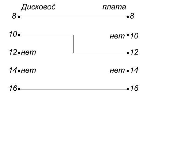 При подключении советского дисковода к -Поиск- приходится в шлейфе переделывать таким образом.