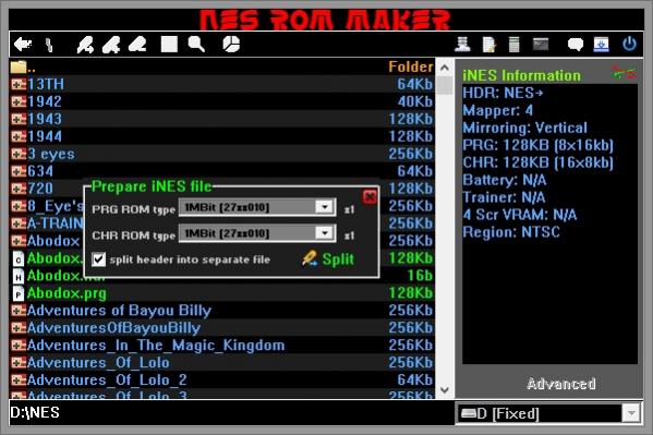 - нарезка ромов для прошивки в ПЗУ картриджей;