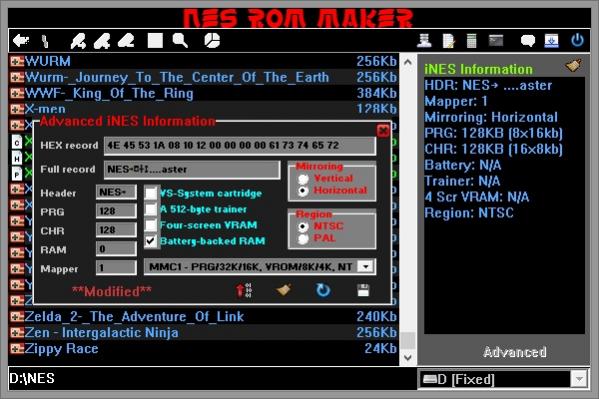 - чтение и редактирование заголовков *.nes файлов (галочками, проще некуда, гуи для этого и писалось));
