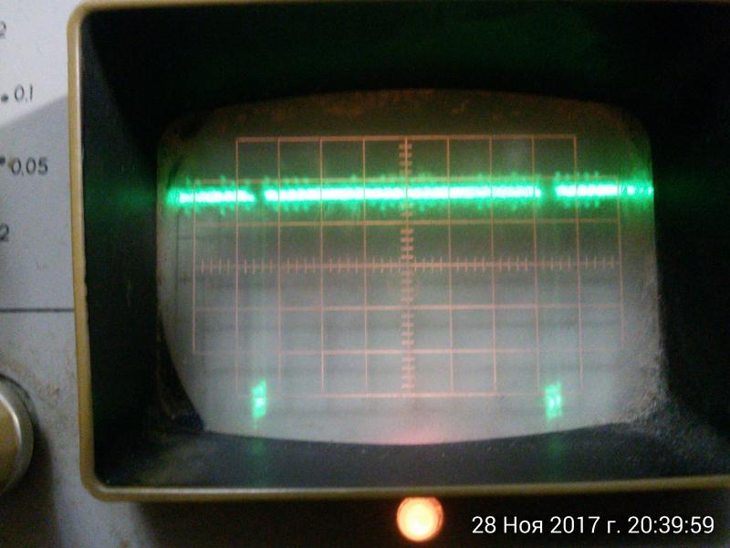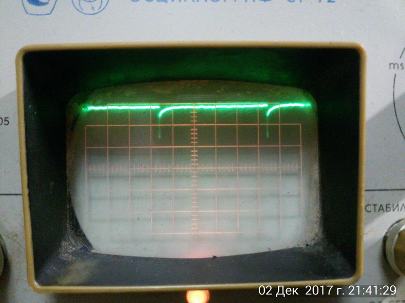 Получилось словить сигнал на 1н и 19н ДД44(см фото),но импульсы какие то "интересные",или они такие и есть? Пояснения к фото: развертка 1вольт/дел,20мкс/дел.Нулевая линия -- 3-я снизу(сдвинута на 1 деление вниз от нулевой линии),иначе изображение не влазило в экран, а на 2вольтах/деление -- не удавалось засинхронизировать изображение. Но клава - не работает.