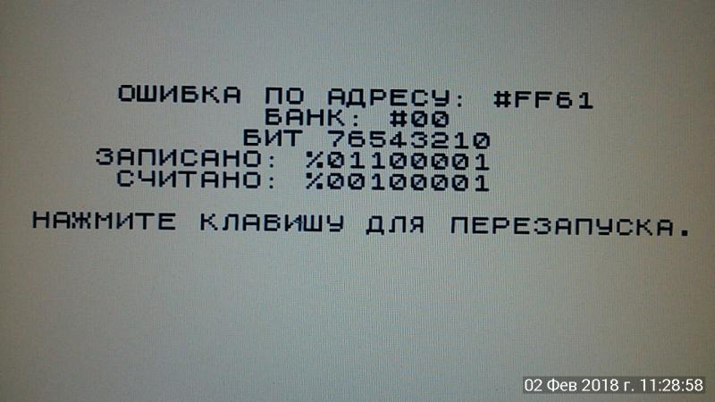 В ОЗУ Вы поставили РУ7И,может из-за РАЗНОСОРТИЦЫ микросхем получается ошибки в ОЗУ, или еще какая-то РУшка шалит,а может даже и не одна (ошибки по РАЗНЫМ адресам и БИТАМ).