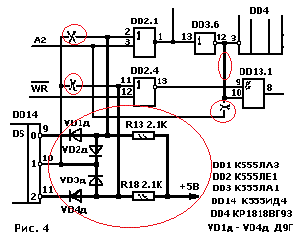 8. Выв.8 D2/9.3 к выв.36 D2/4, а выв. 9 и 10 к сигналу WP дисковода и выв. 11 D2/9.4 к выв 12 D2/7.2, а выв . 12 и 13 к сигналу RDATA дисковода.