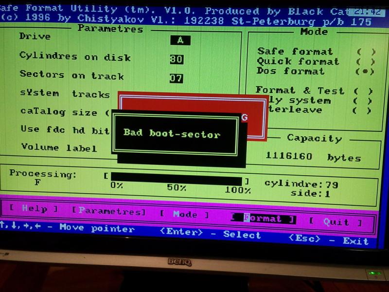 форматирует но в конце выводит сообщение: "Bad boot-sector"