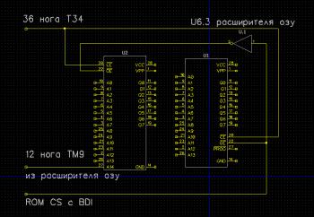 Понял, буду делать схему. У меня на схеме есть дешифратор для переключения микросхем ПЗУ(U21) , можно ли его как-то задействовать? Там как раз и используются сигналы CE, MREQ, RD, A13, а то она в данный момент не задействована у меня, с завода не использовался, хотя и был впаян.