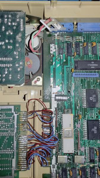 Если там распаяна микросхемка последовательного интерфейса (а не как ниже на картинке, возле белого процессора пустое место) - то как-бы можно будет позже (когда машинка запустится хоть как-нибудь) озаботиться питанием +-12В, преобразователи продаются. В таком случае заработает последовательный порт, а это одна из возможностей загрузить нормальную RT-11 на УКНЦ. Причем довольно просто, без мучений с флопповодом, какао и прочим. Тут есть тема даже (https://zx-pk.ru/threads/16001-uknts...z-styk-s2.html)
