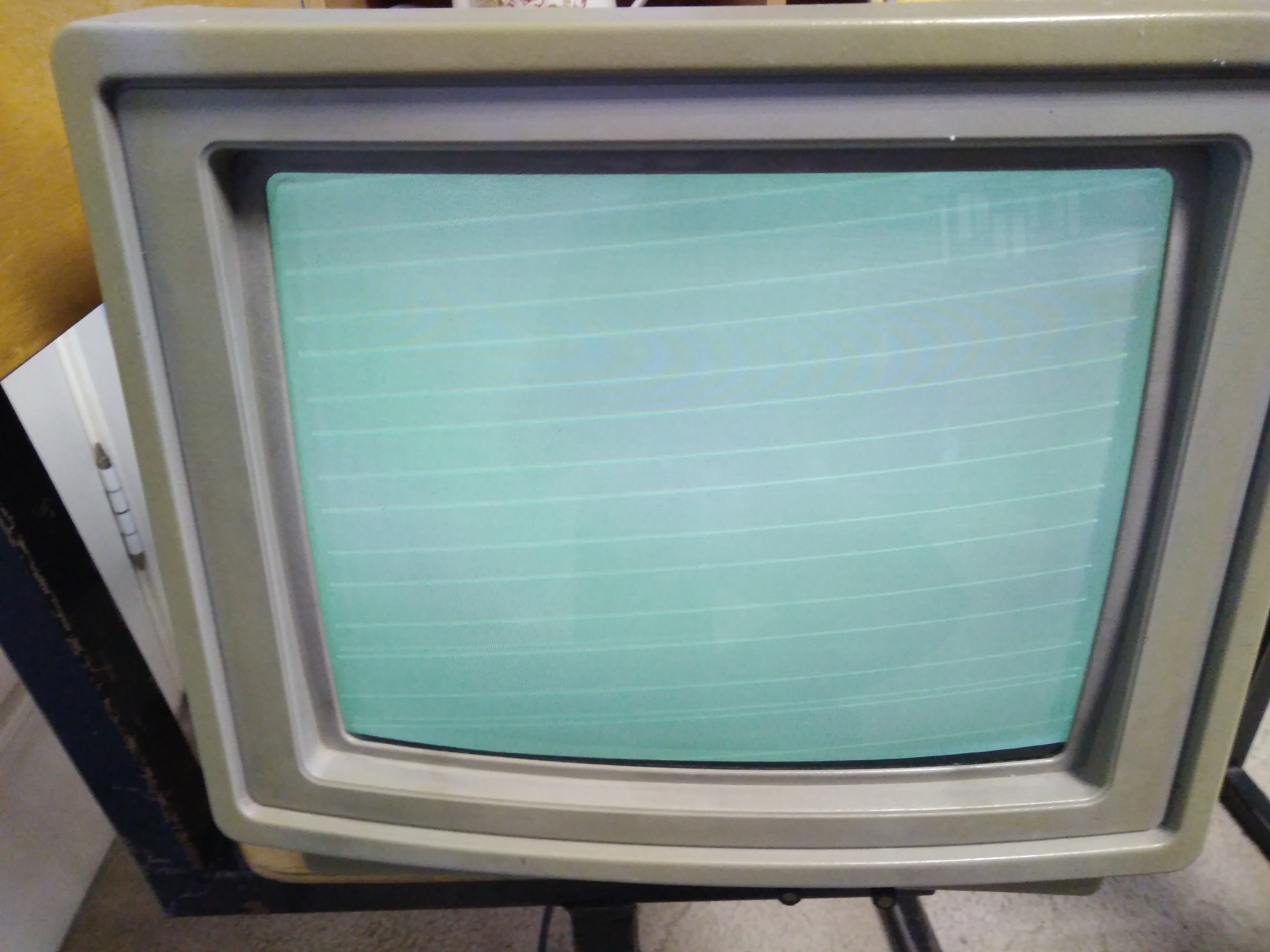 Включил монитор, теперь он больше не издаёт ужасных звуков, картинка стала более стабильной, уже можно читать. Но остались и дефекты: горизонтальные линии на большой яркости и уход картинки в зелёный цвет.