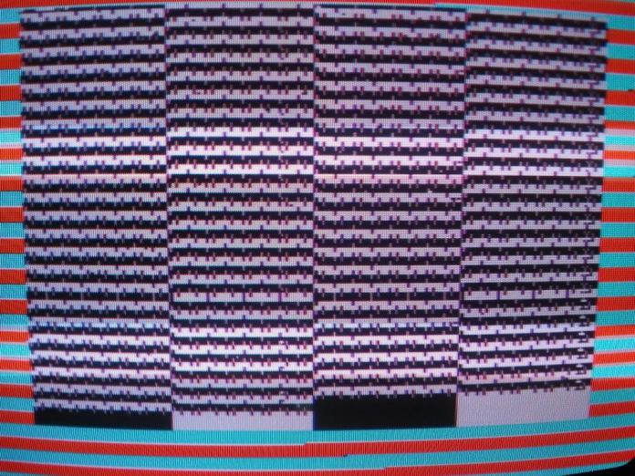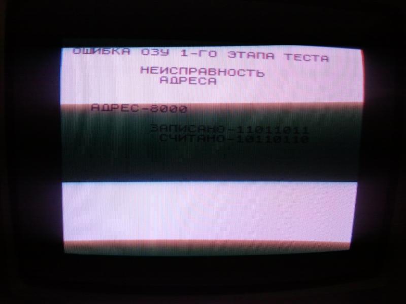 Добрый день! Восстанавливаю Синтез 2. "Матрас" и заставка с "родным" ПЗУ правильные. При старте теста-48к на первых 2-х тестах есть проблемы с изображением (фото 1 и 2). Остальные тесты (до теста памяти) проходят нормально. При тесте памяти выдаётся сообщение об ошибке (фото 3). После прогрева появляются вертикальные розовые полосы (фото 4). Как вычисляется адрес неисправной К565РУ5? Спасибо.