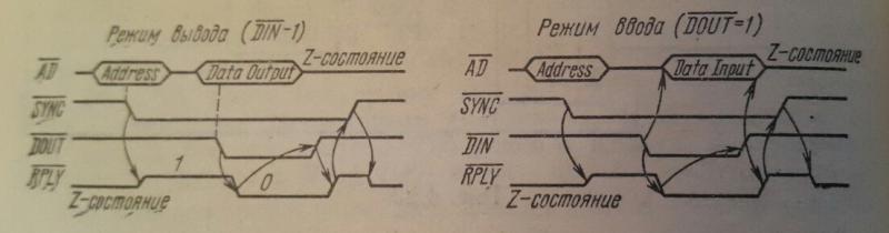 ( Выбор СОЗУ ) + SYNC 0v + DOUT 0v = RPLY 0v.
