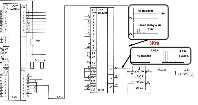 Жму любую клавишу, в пищалке появляется постоянный тон средней частоты и длится пока не сделаю RESET.
