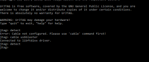 UrJTAG поддерживает довольно много интерфейсов. поэтому первым делом проге надо показать, что работаем именно с blaster-ом. Потом сё отсальное.