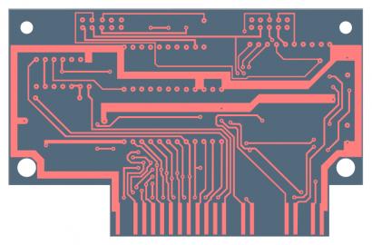 Если есть платы на руках, может, измерите расстояние до микросхем от любых двух краев платы? И на фотках конденсаторами закрыты дорожки, тоже надо знать, что там.
