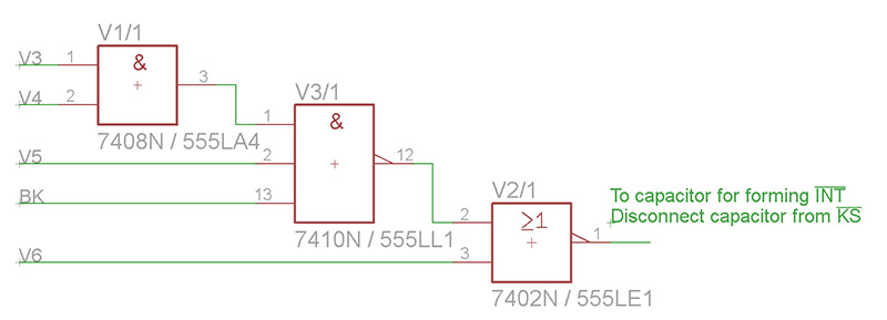 I've tried implementing the !INT circuit as found in ZS Scorpion 256 Turbo+ machines (!KS and H6 via TM2) sadly that didn't change anything.