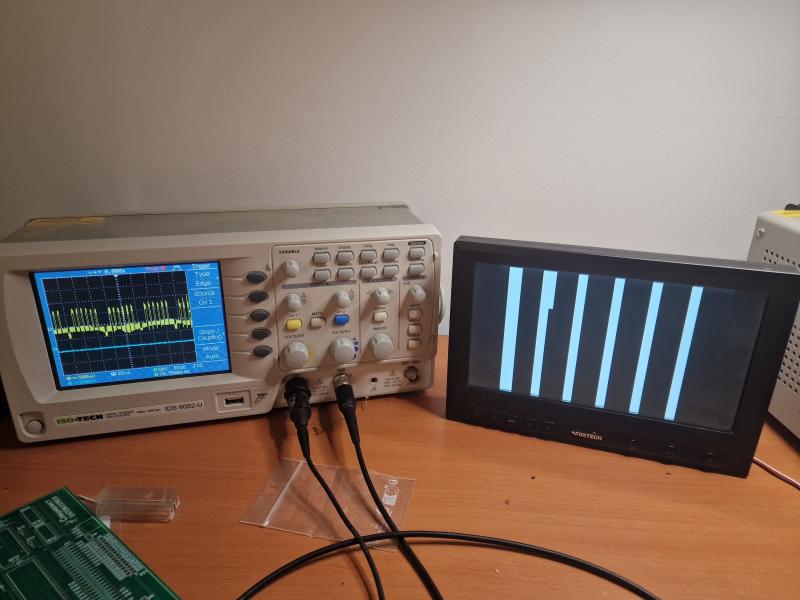 2) Хочется менее зашумленый сигнал на видеовыходе (на осциллографе, на экране все более-менее). Да, эстетство. Я его хочу в педагогических целях использовать, а при черном экране строчные синхроимпульсы еле-еле из шума выглядывают. «Неаккуратненько!» (С)