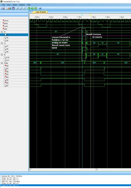 Проделал эксперимент. Выпаял все ОЗУ и LS157. Поставил статическую ОЗУ. Момент чтения из ОЗУ не поменялся, глюки остались
