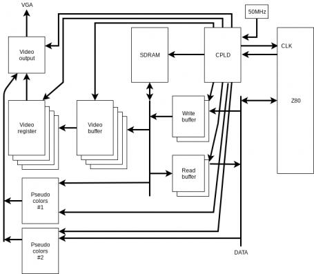 Да уж, ради 10 МГц такта (для ПРО) реального компа вдувать 100 МГц - это жёстко. Я бы пошёл по пути МПС сама по себе, а "видяха" сама по себе. Разумеется через двухпортовку. Как-то сразу всё проще и логичнее выходит. Но это просто мысли вслух, своего мнения ТС не навязываю.