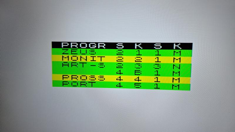 Появляется меню. Для запуска программ выбираем номер страницы путем переключения переключателя (1-4) и нажимаем нужные буквы и цифры по меню по порядку. " S " - номер переключателя, " K " - кнопка которую нужно нажимать.