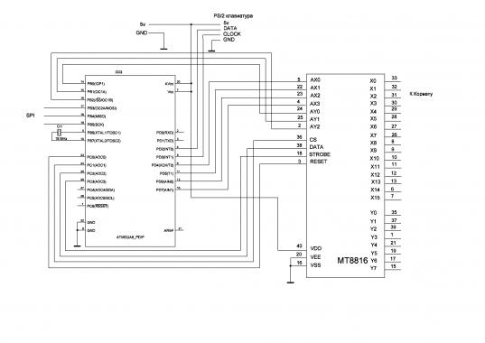 Вот еще даташит на MT8816. Только имейте в виду, что нумерация выводов по крайней мере для DIP корпуса там дана ошибочная. В моей схеме - правильная.