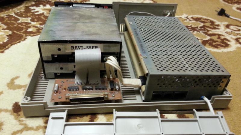А теперь я помучался с Корветом. Пришли два дисковода - Электроника 5311 и 5313. Первый - как есть, второй собран из двух, у него мотор слишком быстро крутился, я поставил в него привод от 5305. Сначала я проверил их на УКНЦ. Худо-бедно работают, хотя и далеко не идеально. Но по-крайней мере, загрузка с них идёт. Подключаю их к Корвету. Пока они лежат на столе отдельно. Что-то плоховато с загрузкой - на 5313 через раз, на 5311 с пятой попытки. Почистил им головки, вставил их в ВБ (вспомогательный блок), всё собрал. Включаю - Бейсик и всё, хоть тресни. Сколько ни жал Reset, так СР/М и не увидел. Менял буквы у дисководов, оставлял по одному - всё равно Бейсик. Потом я обнаруживаю, что в дисководе у меня стоит загрузочная дискета от УКНЦ... Стучу себя по лбуВ процессе изысканий на каком-то этапе произошла подмена дискеты. Втыкаю корветовскую - ура, есть загрузка! С нижнего дисковода, 5313. Несколько раз перезагружаю - грузится. Ну, раз он надежнее, меняю дисководы местами, ставлю 5313 наверх. Собираю, включаю - на дисководе загорается лампочка - и тишина, даже диск не крутится. Подключаю их к УКНЦ (питаются они от корветовского ВБ). Работают. Неудобно каждый раз снимать монитор, отключать, подключать его. Поставил монитор вниз, а ВБ на него. Всё грузится, оба дисковода работают, хотя бы список файлов открывается. Игрушка с В запустилась. Ставлю обратно - ВБ вниз, монитор на него. И опять - дисковод пошуршит, и тишина. Ни Бейсика, ни СР/М-а. Отключаю монитор, перезагружаю. По звукам слышу, что система загрузилась. Втыкаю питание монитора, компьютер сбрасывается. Приподнимаю монитор, оттаскиваю его, насколько хватает проводов - ничего не меняется. Меняю родной корветовский монитор на "Колокольчик" - то же самое. Но у него провода подлиннее, я ставлю его рядом. Всё заработало! Держу монитор на руках над ВБ - если поднять его сантиметров на 15, всё работает. 5 см - уже не работает. Если после начала загрузки, появления надписей НИИЯФ и т.д., но до появления "А:>" опустить монитор, появляется сообщение BDOS ERROR.