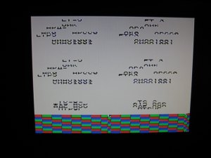 Ох и проблемный Harlequin у меня получился. Разбирался я со схемой, чтобы понять где какие сигналы должны быть. Даже Протеус к этому делу подключил. Симулировал куски схемы и получившиеся временные диаграммы сравнивал с реалом. Аж голова разболелась. Но в итоге выяснил, что с выхода 3 микросхемы U28 (74HC32) вместо пачек по 32 импульса у меня к каждому импульсу добавлялась иголка. Поэтому микросхема U38 (74HC4040) считала пачки по 64 импульса. Решил я эту проблему подпайкой конденсатора на 180 пф между 3 ногой и землёй микросхемы U28. И ура!, появилась правильная картинка (я так думал). Но затем понажимав клавиши я заметил, что выводится всего 31 символ вместо 32. Последний не виден. Плюс атрибуты первого символа в строке смещены на 1 пиксель вниз, а последнего в начало этой строки. Ну вообще, абзац...