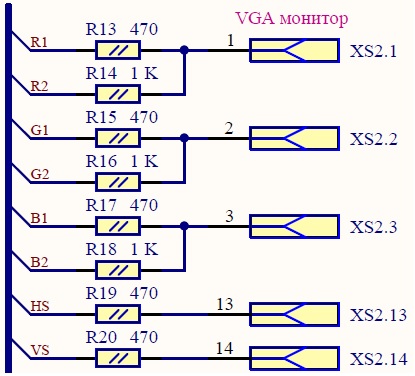 5. XS2 - DHR-15FB или DS1038-15F, 1 шт., разъём для подключения VGA монитора;