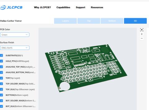 JLCPCB иногда некорректно отображает некоторые слои. Я загрузил у меня тоже с какими то косяками, но при 3D просмотре становиться все ОК