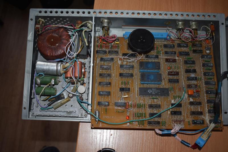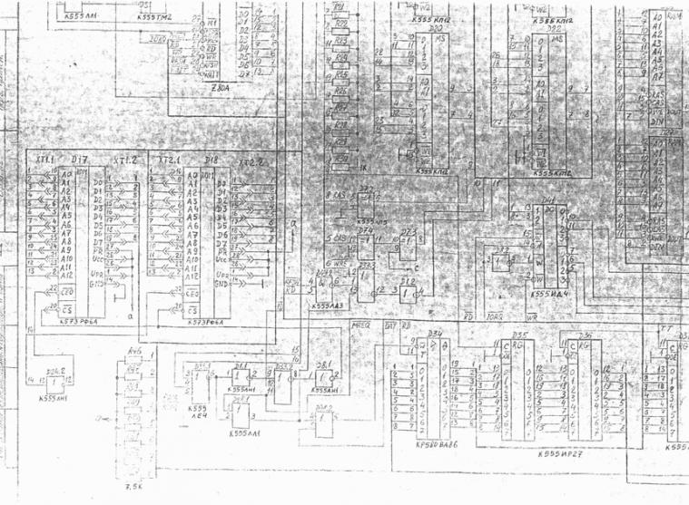 Здравствуйте. Купил почти даром Урал. Включался через раз - перебит провод был, заменил. Подцепил к ТВ - вообще ничего. Нашел один непропаянный резистор - пропаял, в цепи sync нашел обгоревший резистор - заменил. На выходе sync 3 с чем-то вольта, вроде бы это много, но тнм не менее изображение есть. Но экран залит каким-то не то синим, не то зеленым цветом, несколько вертикальных рядов каких-то рисок, бегущих вниз и в правом нижнем углу синий квадратик. В какой области копать? Мультиметр есть, осциллограф есть (только я им еще ни разу не пользовался:-))) Спецы, подскажите плиз. Спасибо. PS: фотик не совсем реалистично фотает экран ТВ. Количество рисок в два раза больше, каждая вторая фотиком не ловитсяНа резет реагирует. Если вытащить обе ПЗУ - есть матрас, но неправильный, цветной такой.
