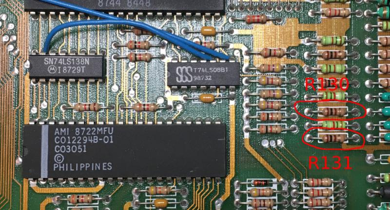 Выяснить это можно только методом прозвонки, выпаивай POKEY, резисторы и прозванивай короткие участки трасс.