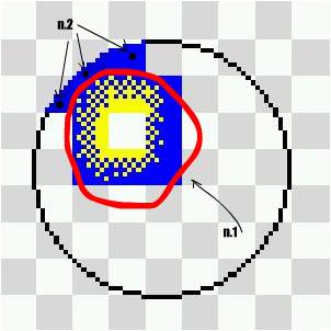 На первом Шаге все просто. Рисуется круг в сетке знакомест так