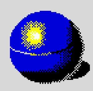 телом шара цвет синий+черный, на наружной границе - черный+белый.