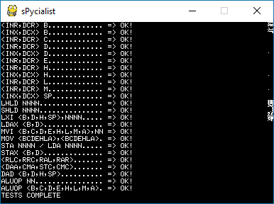 Данный эмулятор может представлять лишь академический интерес из-за невысокой скорости эмуляции и отсутствия какого-либо сервиса. Эмулятор писался сугубо из личного интереса. Тем не менее, основу sPycialist составляет эмулятор Intel 8080. Эмуляция данного процессора получилась достаточно точной - полностью проходятся все тесты 8080/8085 CPU Exerciser. Реализация Intel 8080 находится в отдельном файле и почти никак не завязана на эмуляцию ПК Специалст. Таким образом данный эмулятор процессора Intel 8080 может быть с успехом использован в каких-то сторонних Python-проектах.