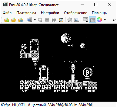 Жаль конечно , что без цвета . Запускал на Специалист-М , ЭРИК и СЯБР . Полёт нормальный . На СЯБРе пробовал с разными процами и на разных частотах - работает . На ЭРИКе и СЯБРе (в TURBO) скорость заметно выше . Т.е. есть потенциал для цвета