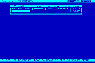 2. В emu запускаем конфиг SpecialistMX2. Вводим команду R, появляется диалог выбора файла, выбираем exolon.rks из папки MX2. Когда загрузится запускаем командой G