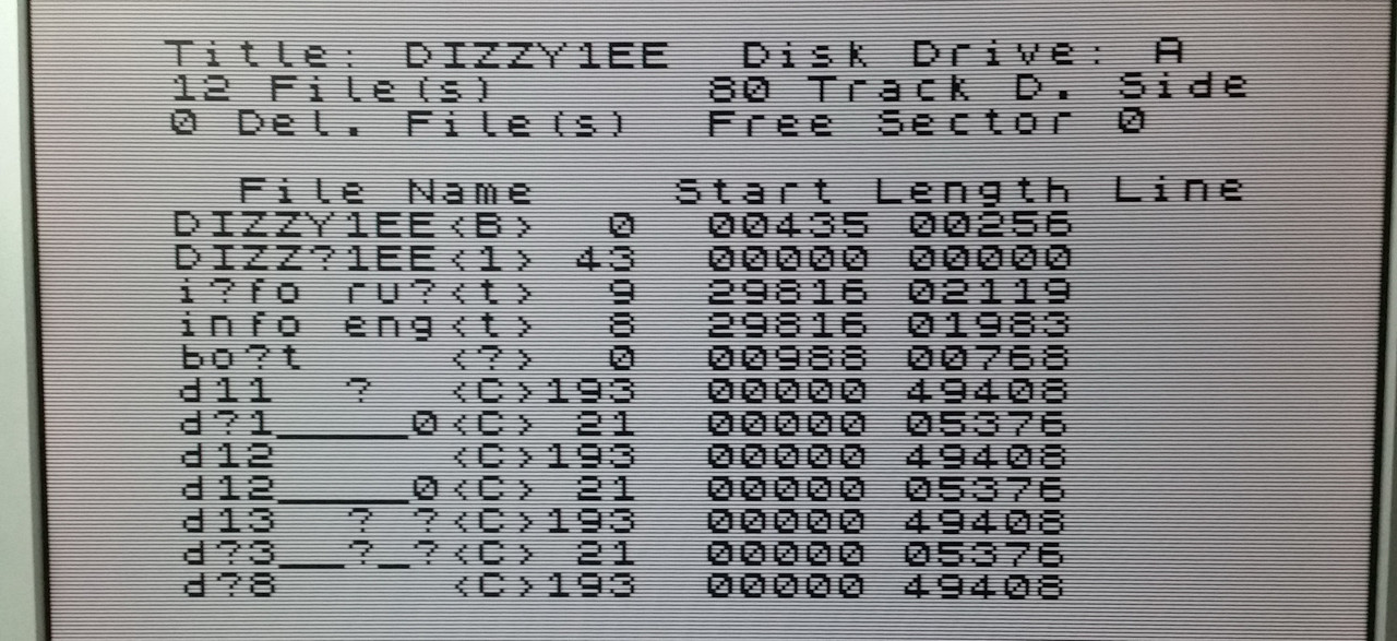 Сначала проверил чтение. В турбо-режиме (7 МГц) Скорпион некорректно считывал даже оглавление диска. В обычном режиме (3.5 МГц) чтение работало корректно.