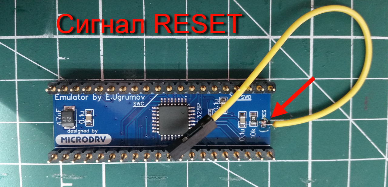 Провод к пину RESET необходимо подпаять. На плате есть специальная площадка: