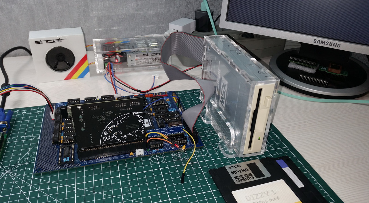 Для проверки использовал свою тестовую плату ZS Scorpion 256 Turbo+. В качестве дисковода подключил самодельный эмулятор типа Gotek.