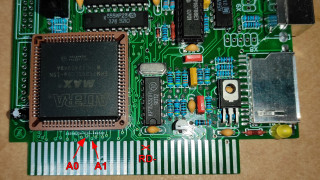 На фото ниже обозначены точки для подпайки к сигналам A0 и A1 и место разреза сигнала RD-