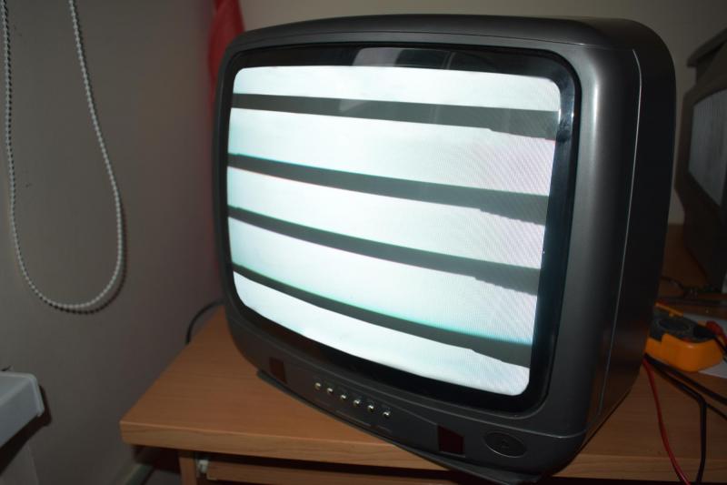 Здравствуйте. Ленинград подключен к китайскому ЭЛТ образца начала нулевых, выход "видео" включен в композит телевизора. Картинка стабильная, не дергается, но показывает вот такие полосы. Что там может быть неисправно? Нажмите на изображение для увеличения.