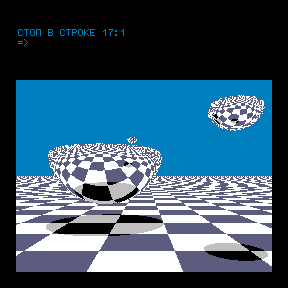 Получилось нечто похожее на красивую трассировку лучей. Списал домашку у Paul Dunn. 5 цветов (в т.ч. "полутоновые" тени), четкие границы квадратов в отражении благодаря точной плавучке. Красота требует жертв, готовьте супервекторы или запасайтесь терпением. Время рисования в 2.5 - примерно 389 минут (6 часов 29 минут), в 2.99 - примерно 165 минут (2 часа 45 минут).