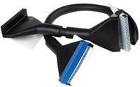 но можно ли подобрать так, что бы она в корпусе с направляющей была в ровень с верхней крышкой ( ну или совсем чуть чуть выступала), тогда из корпуса можно сделать (только с внутренним каким то зажимом / креплением - что бы не допустить расшатывания / разрыва контактов в процессе экспуатации) вывод макарон под дисководы - только не виде широкого шлейфа (хотя почему бы и нет?), а по типу самых поздних IDE - шлейфов, которые были выполнены вот так (что бы охлаждению не мешать) :