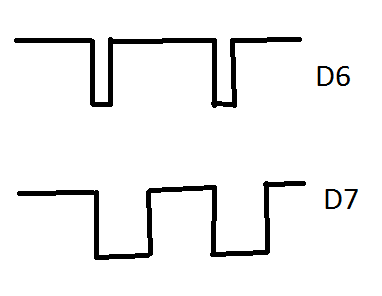 Ну очень примерно. Суть в том, что там, где на DD7 низкий уровень, на DD6 в это время может быть высокий.