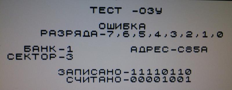 Напомню, что ошибку определяет только ТЕСТ-ПЗУ-128 Хахонова. Другие тесты, ТЕСТПЗУ Скорпиона или загружаемые с диска ошибок не находят. И сам компьютер, вроде бы, работает нормально; внезапных висяков и глюков не наблюдается.