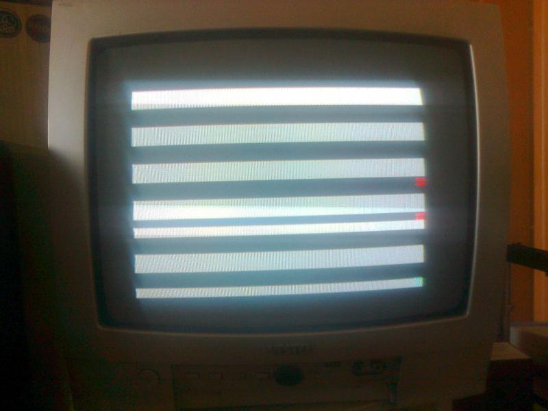 Есть НЭТИ, видимо самый первый вариант с перемычками. Изначально вообще была тишина на видеовыходе. Прошил и поменял D39 (если я правильно понимаю в неё заходит вертикальный синхроимпульс и в ней смешивается с горизонтальным синхроимпульсом, который в ней же и формируется). Результат - появилось изображение без вертикальной синхронизации. Прошил и заменил D36 (если я правильно понимаю она формирует, кроме всего прочего, вертикальный синхроимпульс). Результат - стабильное изображение. Дальше я уже ничего не могу сообразить сам. Картинка такая: черный бордюр и черно-белые полосы на папере. Эта картинка стоит как с ПЗУ и процессором, так и без оных, то есть ни матраса, ни шахматки. При установке тестовой пзу начинают сразу идти мелкие горизонтальные полосы по бордюру снизу вверх и так бесконечно. Процессор работает, все признаки работающего процессора из FAQа железного раздела присутствуют. Посоветуйте, пожалуйста, где что смотреть. Спасибо.