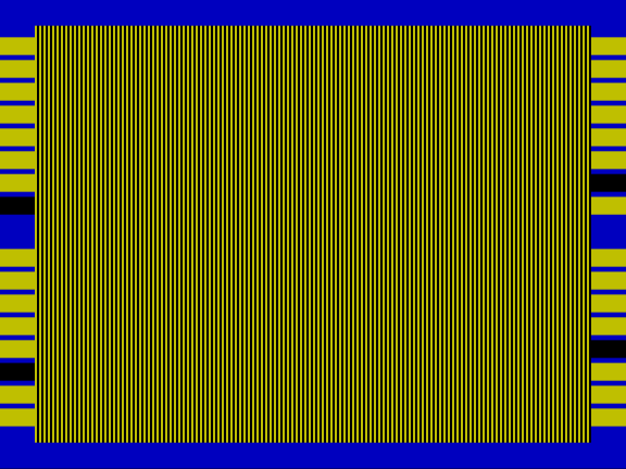 Если использовать порты ВВ55 для хранения результатов тестирования банков, то вполне можно иметь в наличии инфу о сотоянии всех 32ух микросхем. Только как их отобразить, на экран нельзя, бордюром получается только один банк за раз. Либо полоски будут слишком мелкие, считать и идентифицировать микросхемы замаисся.