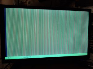 Не удержался и синтезировал проект как есть, без тщательной проверки и исключения латчей, чтобы посмотреть что же увижу на экране телевизора/монитора. Сначала подключился к монитору компьютера, но тот написал что нет сигнала. Тогда подключился к телевизору и увидел следующую картинку: