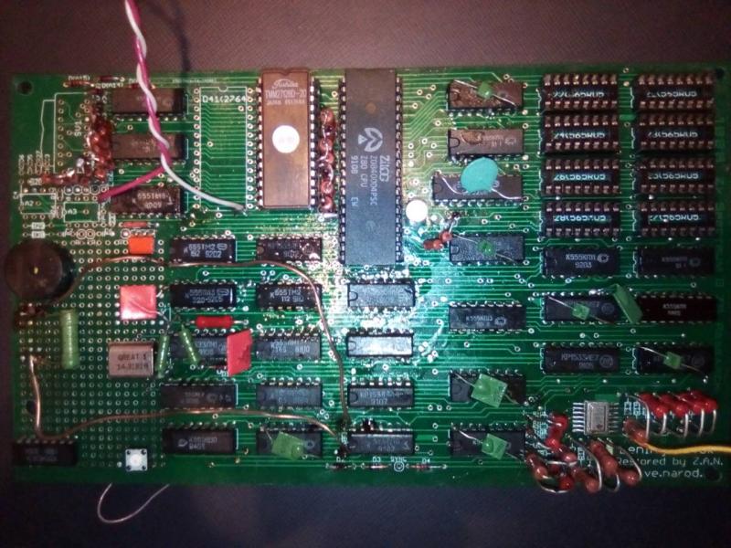 Всем привет, собрал я недавно "Ленинград-1", 48 КБ. Стал проверять, тактовый генератор вроде работает, частота-3,57 МГц. Хотел запустить, подключил к телевизору по коаксиальному, но на экране вместо полос увидел странные помехи. Я искал, что это может быть, но безуспешно. Может вы подскажите, что может быть не так, и если что напишите, что мне вам показать, что проверить. Я делал только одну доработку - доработку сигнала int. Из зуммера слышал тихий и непрерывный треск. Решил, что это проблема дешифрации портов ввода-вывода. Сделал доработки, как в сайте cxemateka.ru , но результата нет. Помогите пожалуйста!Нажмите на изображение для увеличения.