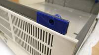 Коллеги, если кому придется это вскрывать, не повторяйте таких ошибок - не нужно до последнего пытаться отгибать эти клипсы, пластик там за годы высохший, хрупкий и главное отгибание отверткой, спицей или чем-то подобным плохо контролируется по величине. Потенциально можно загнать туда отвертку, аккуратно поддеть и провернуть отвертку (а не отгибать на бесконтрольную величину) - я так отогнул вторую клипсу и вскрыл корпус. Но лучше и правильнее не полениться и изготовить специнструмент, которым, судя по мануалу, это должно вскрываться (в интернетах пишут, что его поставляли в фирменные сервисы - привет IBM) - так минимальный шанс загубить крепеж. Инструмент вполне можно сделать из твердого дерева (береза например) или пластика. Я распечатал на 3d принтере (ради этого проекта пришлось его распаковать после годового лежания в коробке и освоить 3d печать). Делается плоский клинышек из пластины толщиной 2,8 мм (чтобы в проеме не клинил), главный размер - высота клина на расстоянии 14 мм от острия должна быть 5,5-5,6 мм - клипса отогнется в аккурат на высоту выступа, за который она цепляется (на самом деле выступ относительно корпуса, от куда он вырос 6,5 мм, но клин входит под углом, поэтому в аккурат хватает 5,6 мм). 14 мм - расстояние от выступа для зацепа клипсы до упора/ограничителя, в который должен упереться клин. Вот так он должен выглядеть: