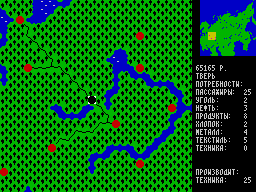 После почти годового перерыва решил тряхнуть кой-чем и взять наконец в руки шашки. И начала реализовываться давняя задумка - что-то типа Transport Tycoon для Спектрума на карте России. На данный момент в представленной демо можно строить железные дороги между 122-ю городами Российской империи, которая включает все территории бывшего СССР, а также утраченные Польшу, Финляндию, турецкий Эрзурум, китайские Порт-Артур и Харбин, Ново-Архангельск на Аляске. Плюс несколько пограничных не наших городов.